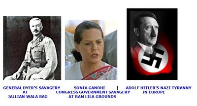 Sonia is violent and her violence spans Political, Spiritual and Physical spheres.  The way she installed herself to become congress president, the way she treats congressmen and opponents speaks volumes in Political Sphere.  Her crusade against Hinduism such as Rama Sethu (historic bridge built by Lord Ram, as per Hindu Holy Book, “Ramayana”) speaks of spiritual violence.  In the Physical sphere, Sonia was sympathetic in Congress party and in Government to the killers of 3000 Sikhs, where innocent Sikhs on streets of New Delhi were lynched to death. Jagdish Tytler who was one of the instigators of the lynching was rewarded with a Government ministry. Central Government provided a weak defense in courts and no congressmen was ever punished for the anti-Sikh pogrom. Rajiv Gandhi whose wife is Sonia even justified the killings by saying "When a big tree falls, the earth is bound to shake".  She is pursuing pro-terrorist policies for vote banks that resulted in number of killings in last three years she was in power just next to Iraq.